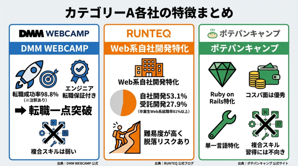 カテゴリーA各社の特徴まとめ