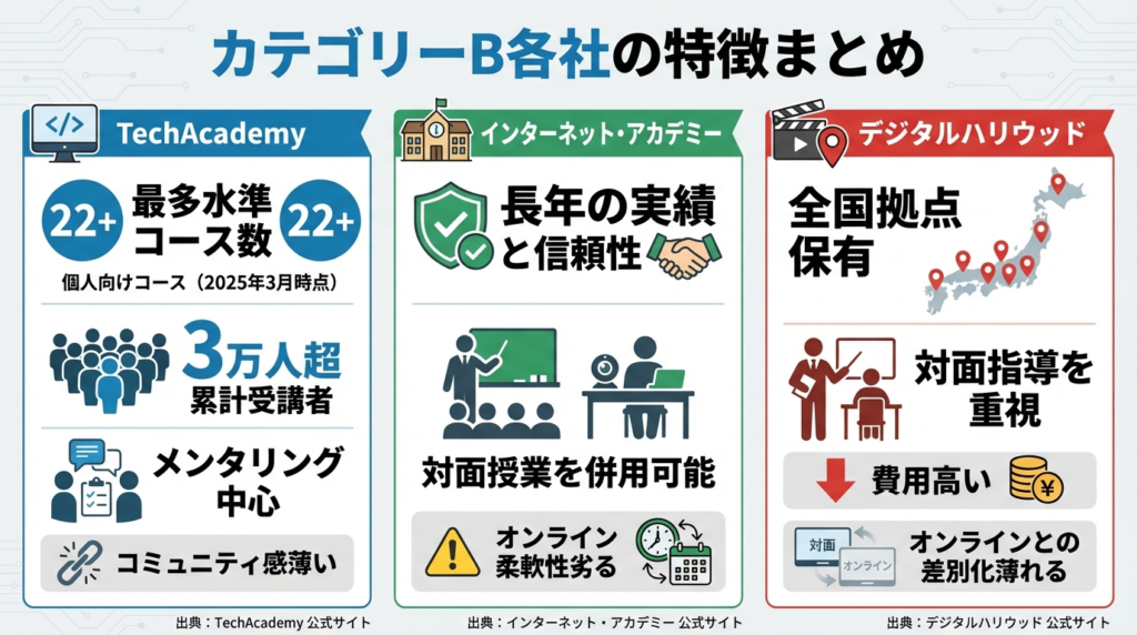 評価軸スキルプラスTechAcademyインターネット・アカデミーデジタルハリウッド