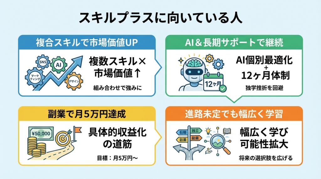 • 複数スキルを組み合わせて収益化したい → スキルプラス