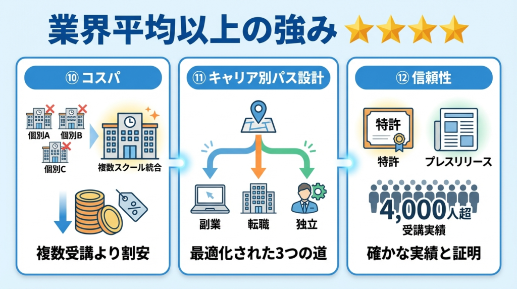 ⑩ コスパ:複数スクールを個別受講した場合より割安
