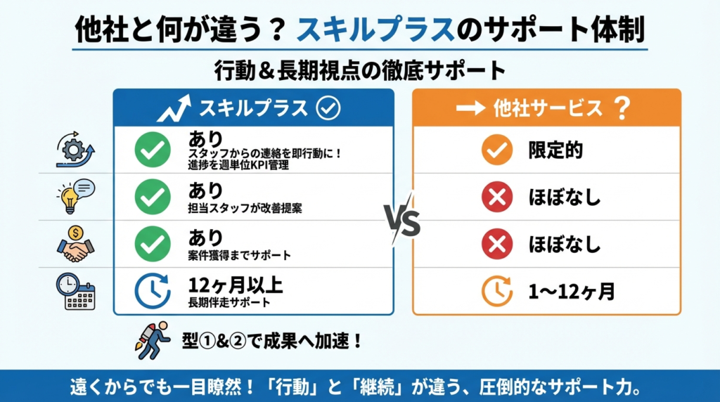 | サポート項目 | スキルプラス | 他社サービス |
