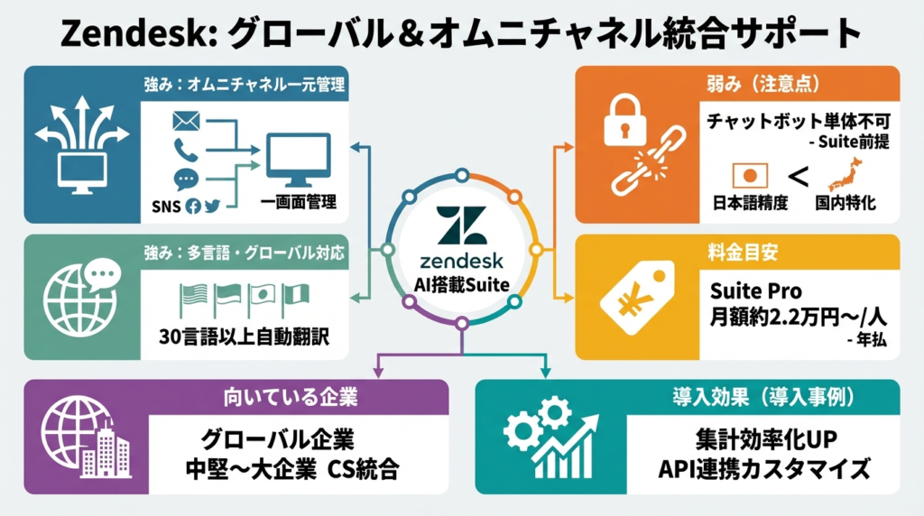 | Zendesk | 3 | 4 | 5 | 2 | 4 | CS特化 | 約22,200円〜/エージェント※2 |