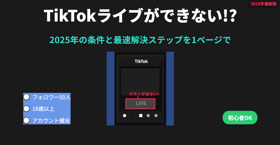 TikTokライブ配信の条件【2025年最新】できない原因・最速の始め方・フォロワー50人の達成方法まで徹底解説