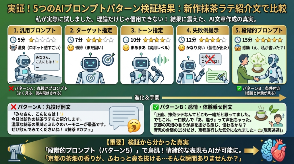 検証の結果、「段階的プロンプト」が最も高品質。これを使えば、AI臭さは消滅します。