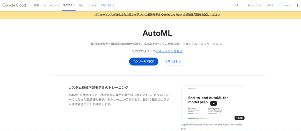 Google Cloud AutoMLは、専門知識がなくても独自のAIモデルを構築できるGoogleのMLツールです。テキスト・画像・音声など幅広いデータを扱え、業務でのAI活用を本格的に進めたい企業に適しています。