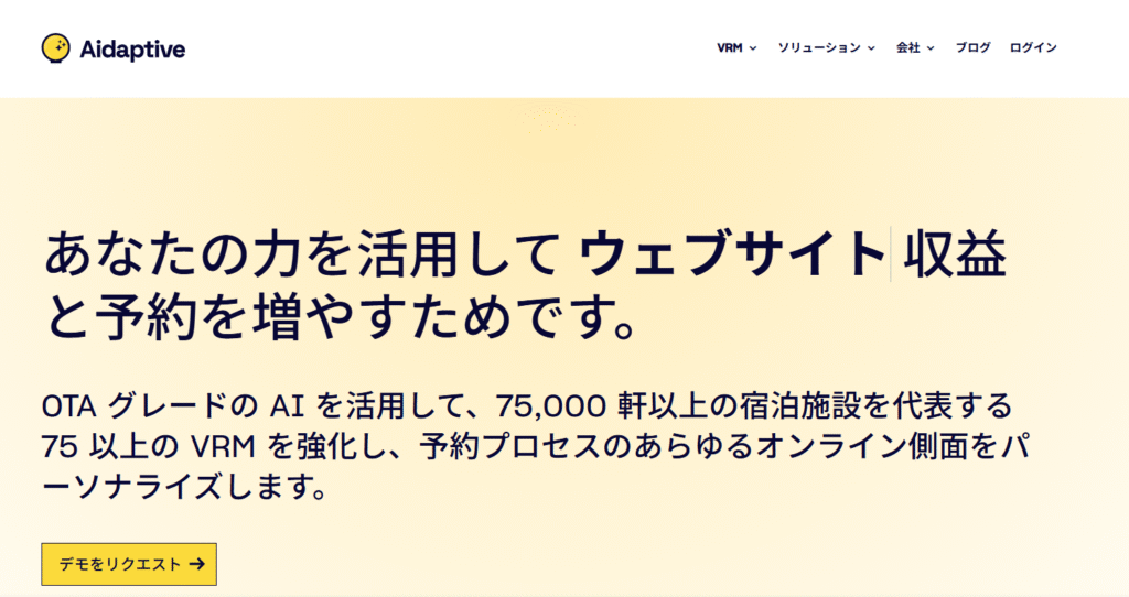 Aidaptiveは、ECや宿泊業界向けのAIツールで、ユーザー行動に基づいたパーソナライズ体験を提供します。予測機能やレコメンドによって、売上向上やCVR改善を支援する設計で、成果に直結する施策を実行しやすい点が特長です。