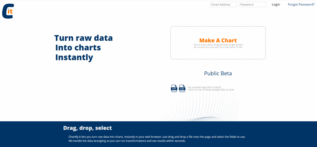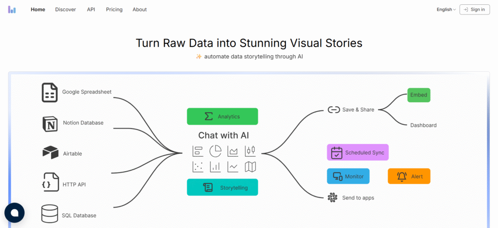 Chartifyは、CSVやDBのデータから即座にチャートを作成できるAIツールです。項目を選ぶだけで最適なグラフを自動生成できるため、シンプル操作で資料作成したい現場にぴったりです。