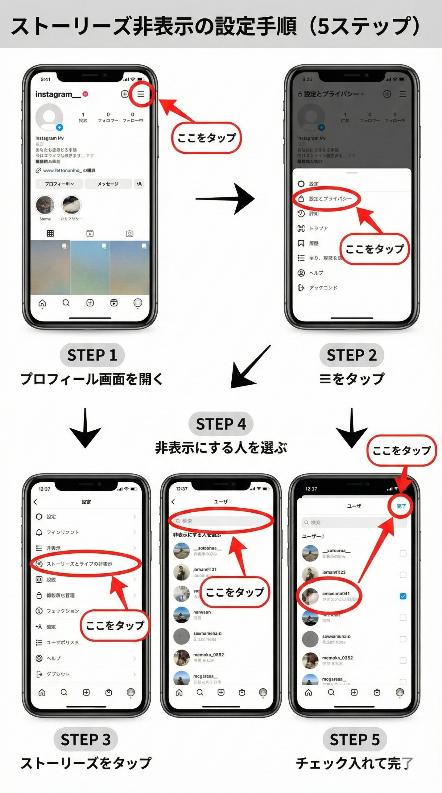 - ストーリーズだけ見せない/特定の人にだけ見せる