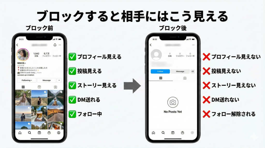 - 相手はあなたのプロフィールを開けなくなります