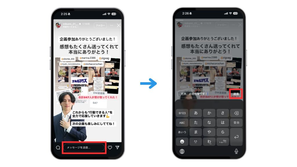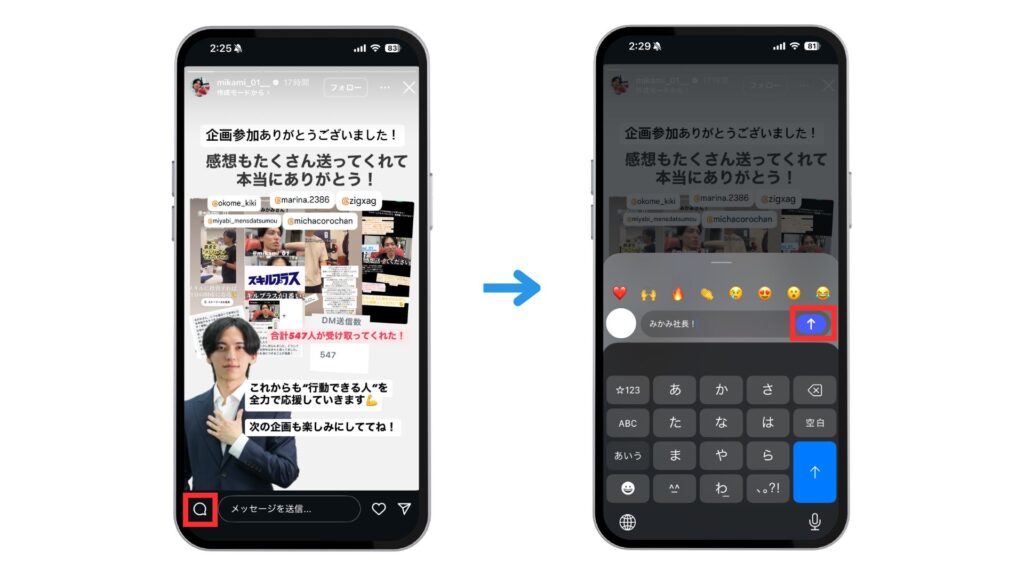 ここでは、ストーリーにコメント(DM)をする方法を解説していきます。