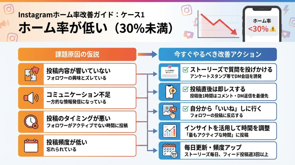 ケース1:ホーム率が低い(30%未満)場合