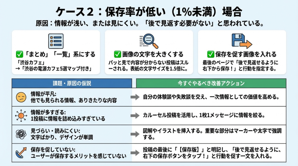 最後のページで「後で見返せるように右下から保存!」と行動を指定する。