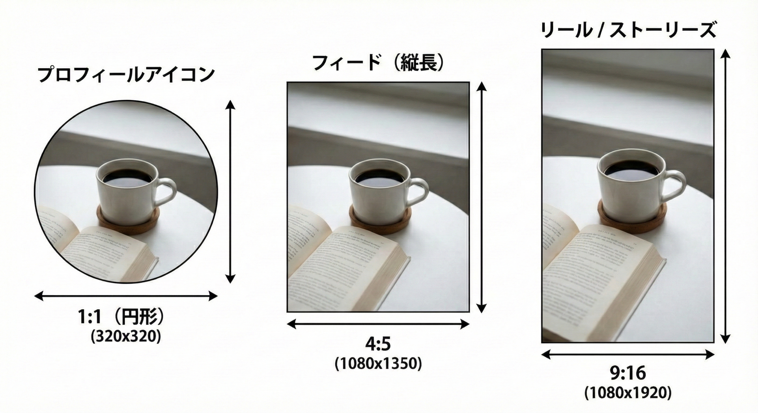 | フィード投稿 (写真) | 1080 × 1350 | 4:5 (縦長) |