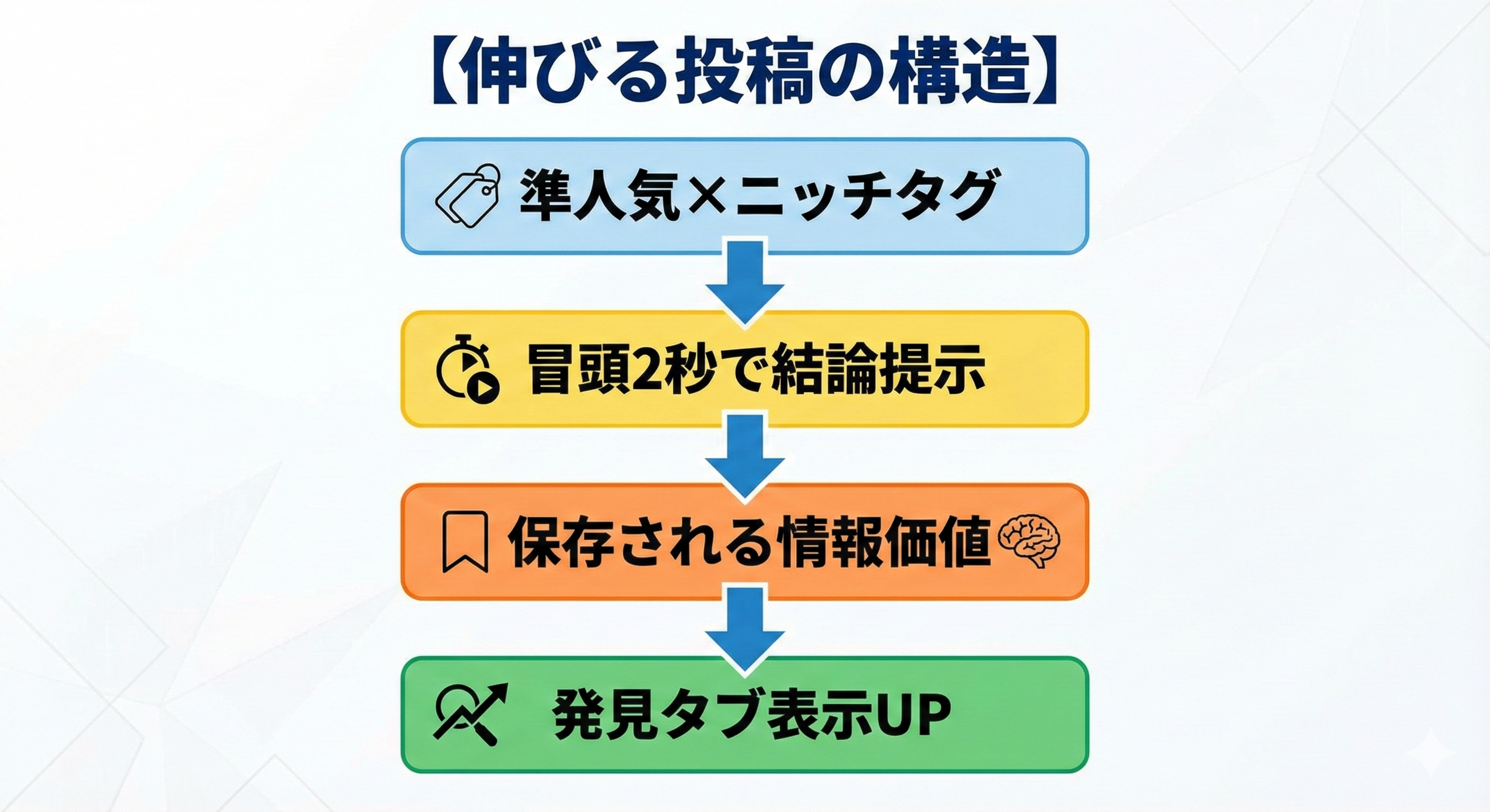 👉 【関連性90% × 準人気 × ニッチ】+【冒頭2秒 × 保存理由】