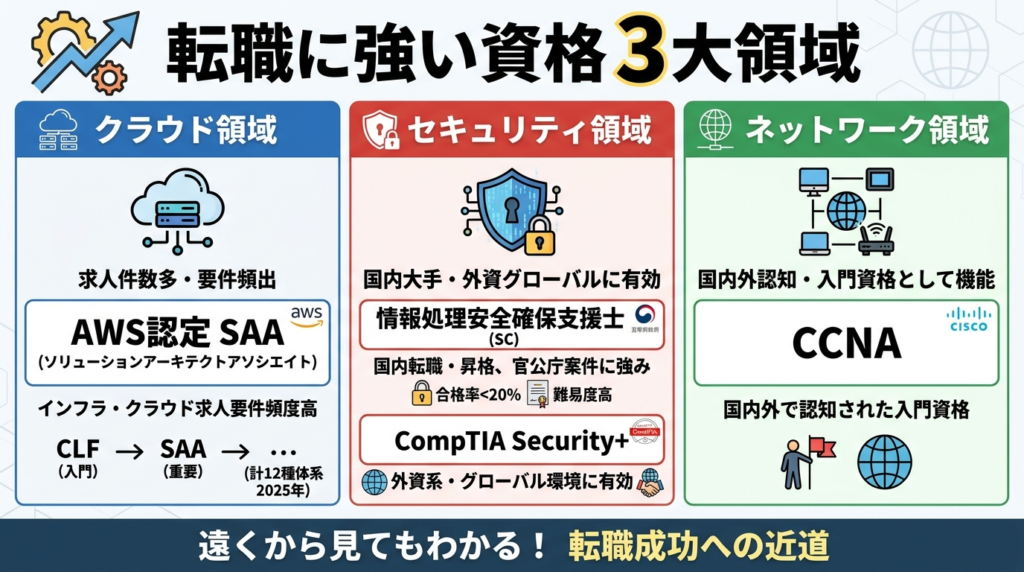 ✅ 転職・社内昇格・案件単価アップの3目的それぞれに合った、取る順番とおすすめ資格