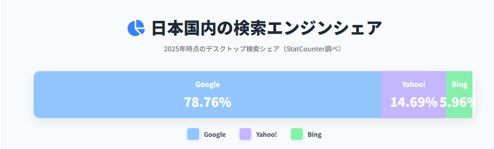 🔹 日本国内の検索エンジンシェア(2025年時点)