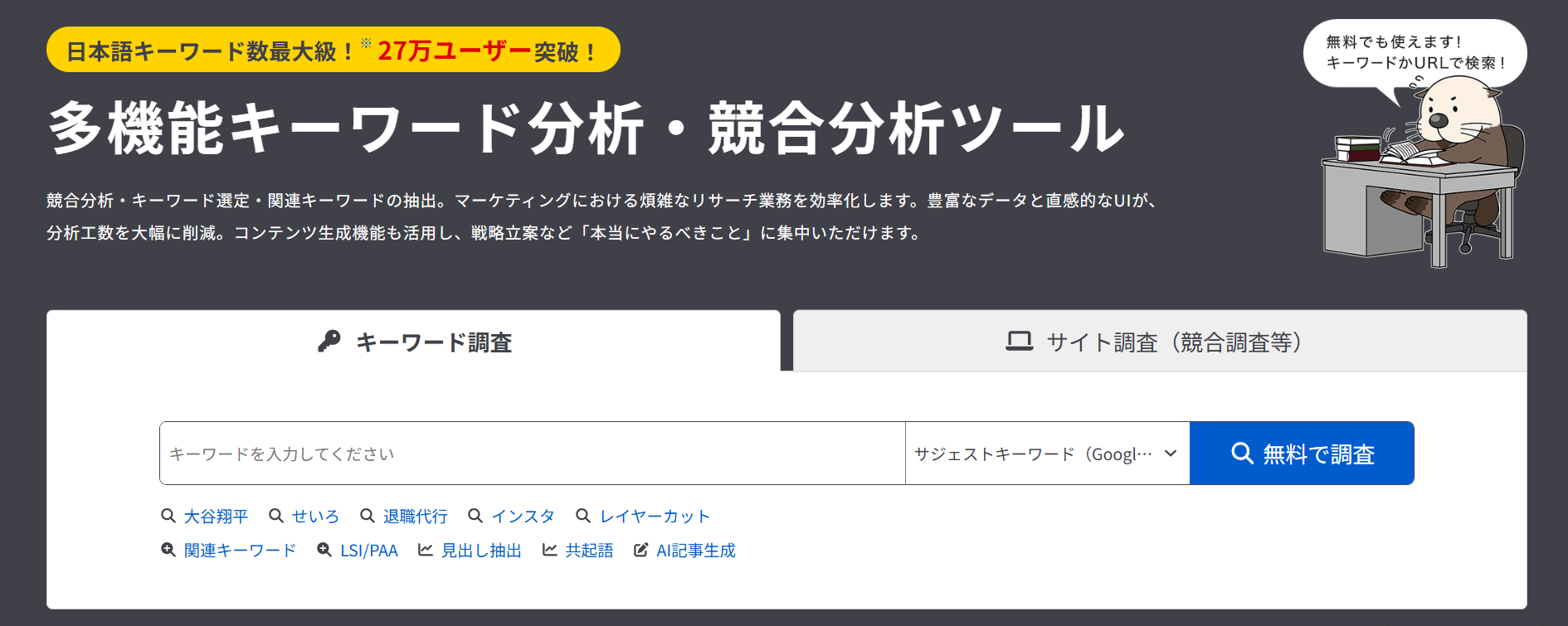 共起語を調べるツールには無料・有料のものがありますが、