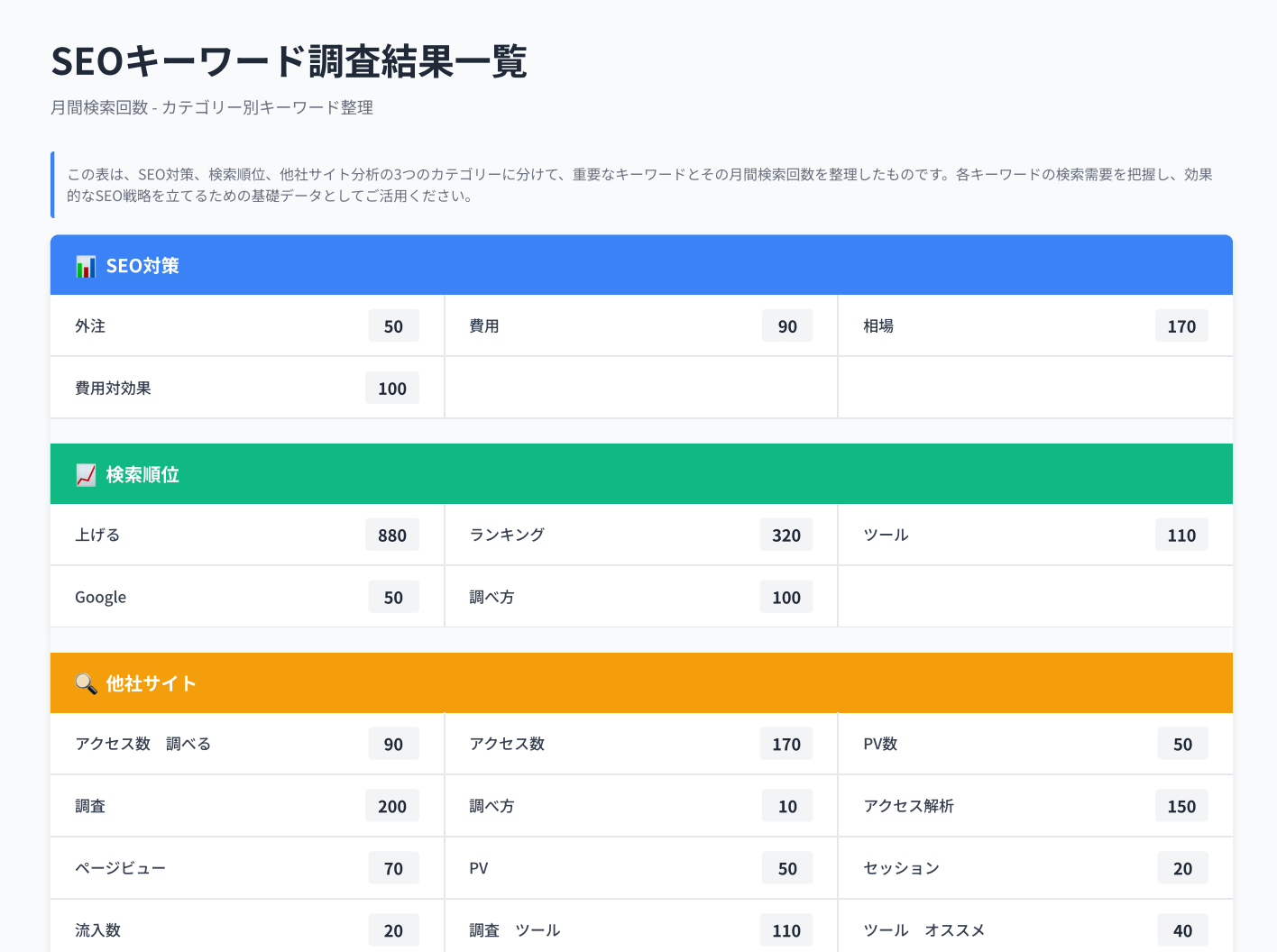 順位に合わせて改善内容を整理し、定期的にリライトと内部最適化を行いましょう。