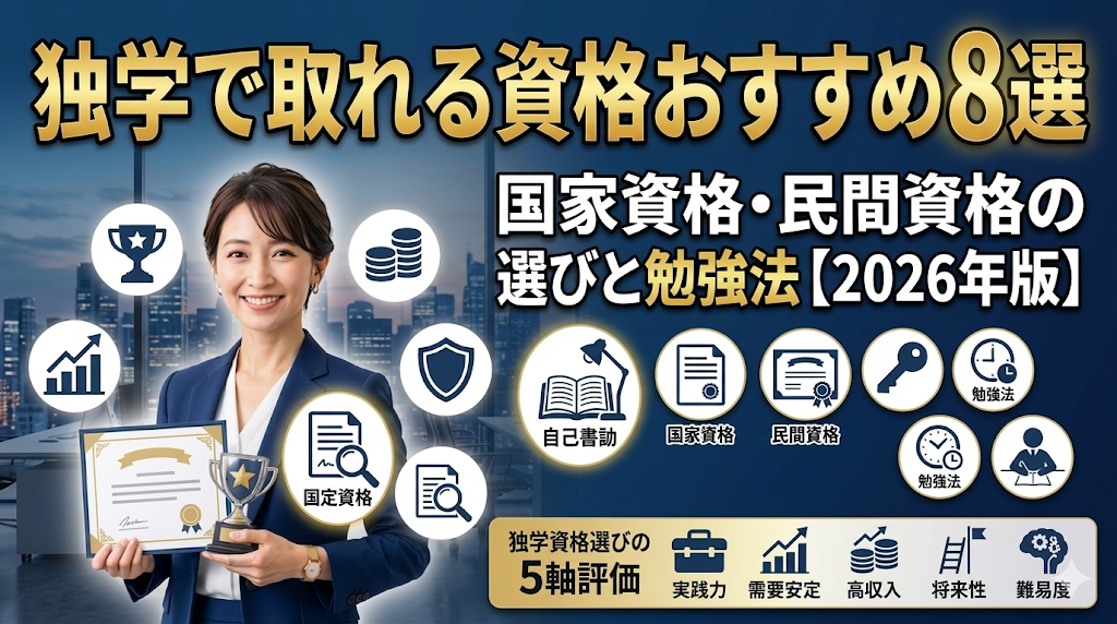 スクールに通う時間も費用もない。でも、今の仕事を変えたい。そのために「独学で取れる資格を1枚」確実に取りたいと考えているなら、この記事で答えが出ます。