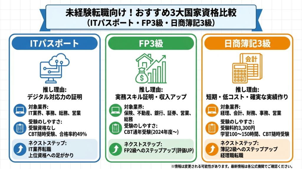 各資格は「独学可能か→自分向きか→最初の1枚になるか」の順で説明します。