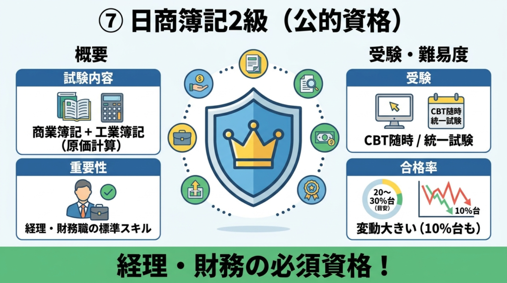 | 経理・会計系 | 日商簿記2級(経理職の応募条件になりやすい) |