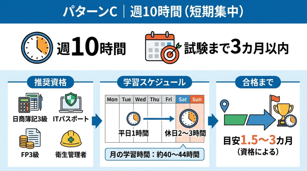 パターンC|週10時間(短期集中・試験まで3カ月以内)
