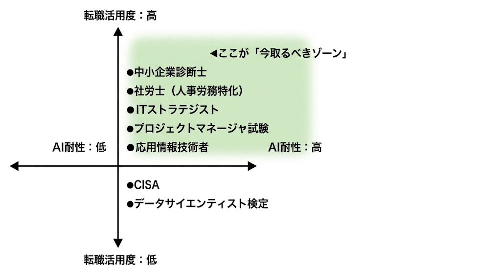 ✅AI時代に資格の価値を決める「AI耐性 × 転職活用度」という2つの物差し