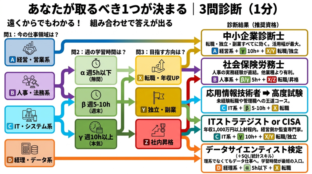 あなたが取るべき資格はこれ|2軸マトリクス+比較表