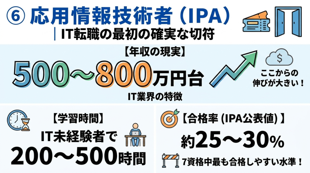 ⑥ 応用情報技術者(IPA)|IT転職の最初の切符として最も確実