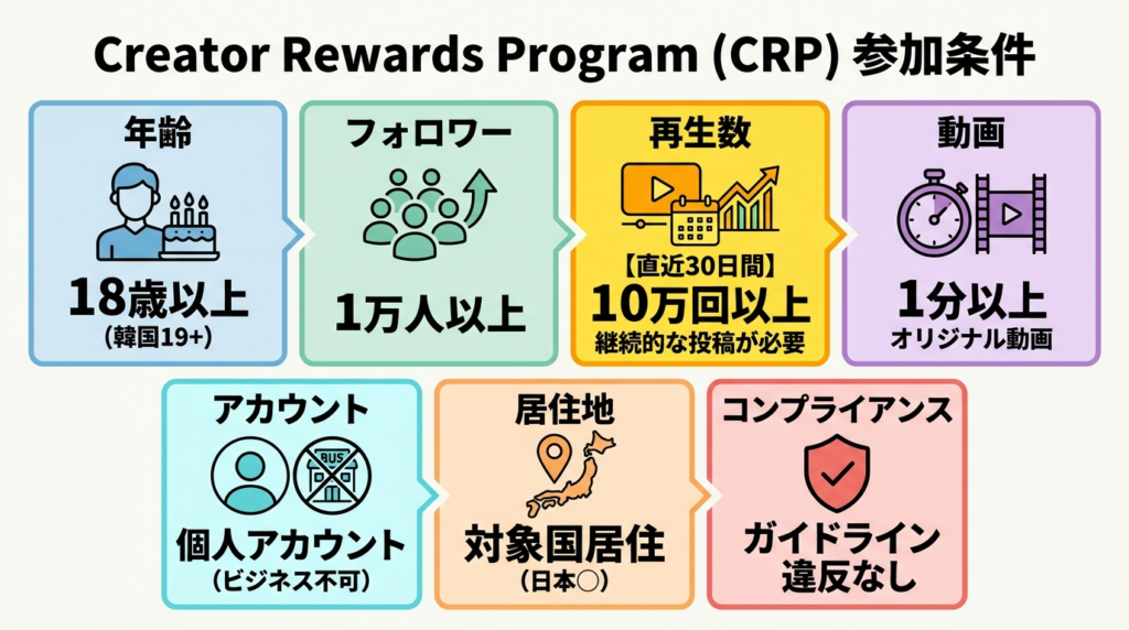 - CRP参加条件・申請方法(日本語):https://www.tiktok.com/creator-academy/article/creator-rewards-program/?lang=ja
