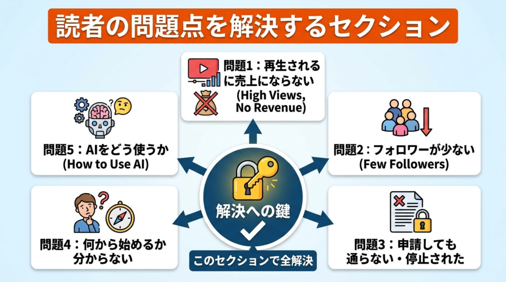 再生数10万回で収益ゼロの人と、再生数5,000回で月5万円の人が同時に存在します。この差は設計があるかどうかだけです。