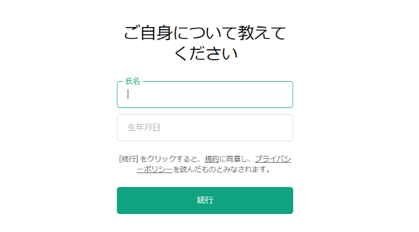 3.メールアドレスとパスワードを入力すると、確認コードがメールで届きます。それを入力した後、氏名と生年月日を登録します。