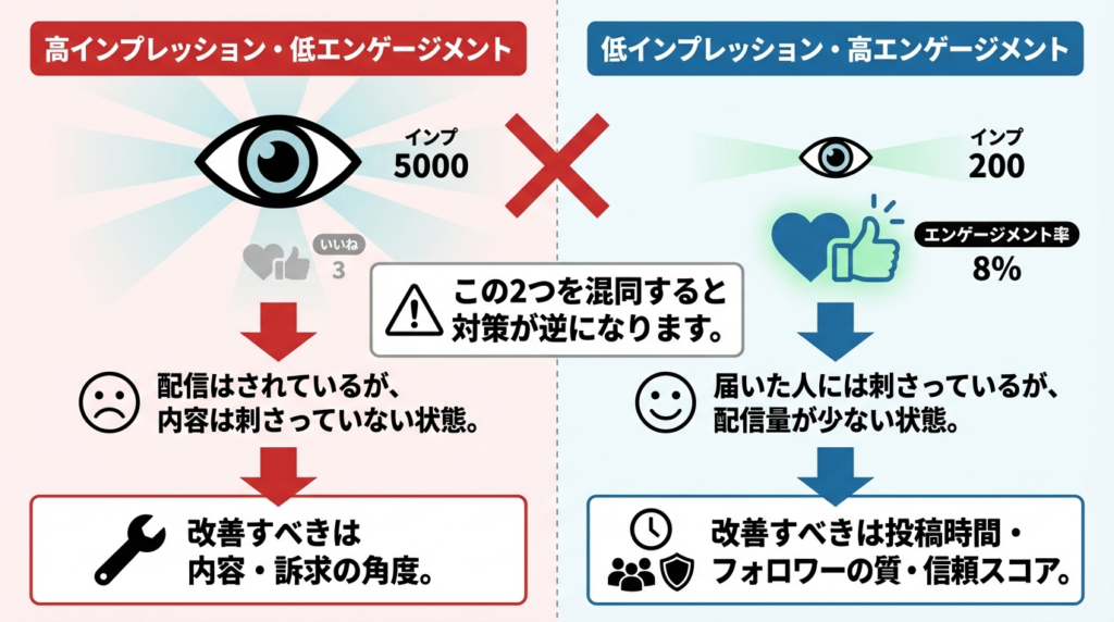 「高インプレッション・低エンゲージメント」と「低インプレッション・高エンゲージメント」は全く別の問題
