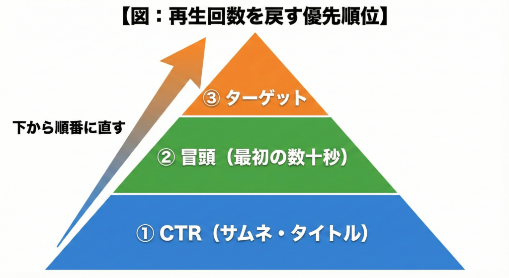 「CTR → 冒頭 → ターゲット」の順番で改善する