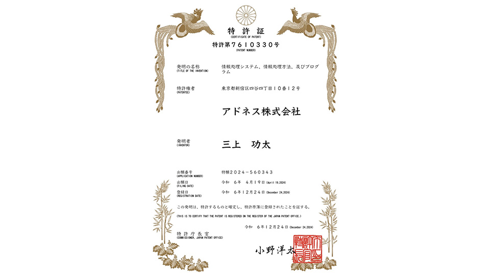 特許権者:アドネス株式会社